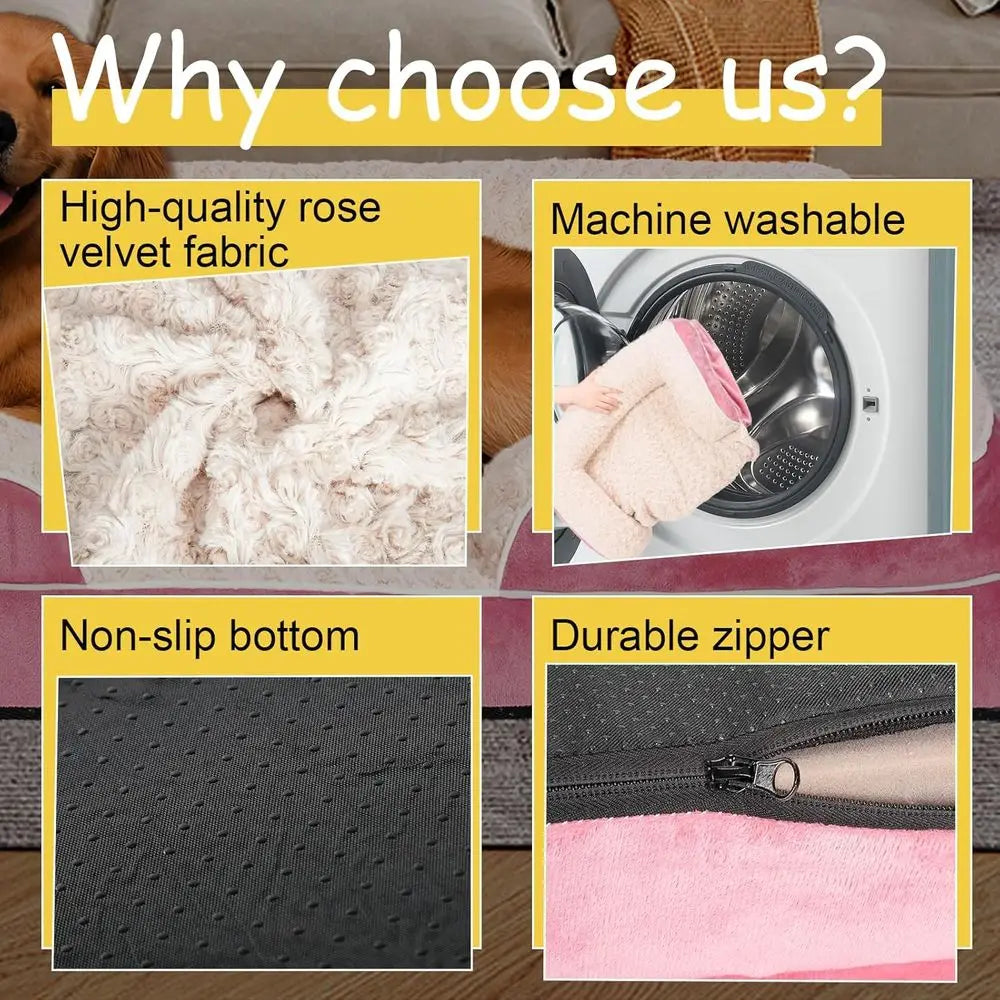 - Rose velvet surface offers a plush, nose-friendly touch along with four-sided pillows that cradle your dog's head and neck for versatile snoozing and all-night security.