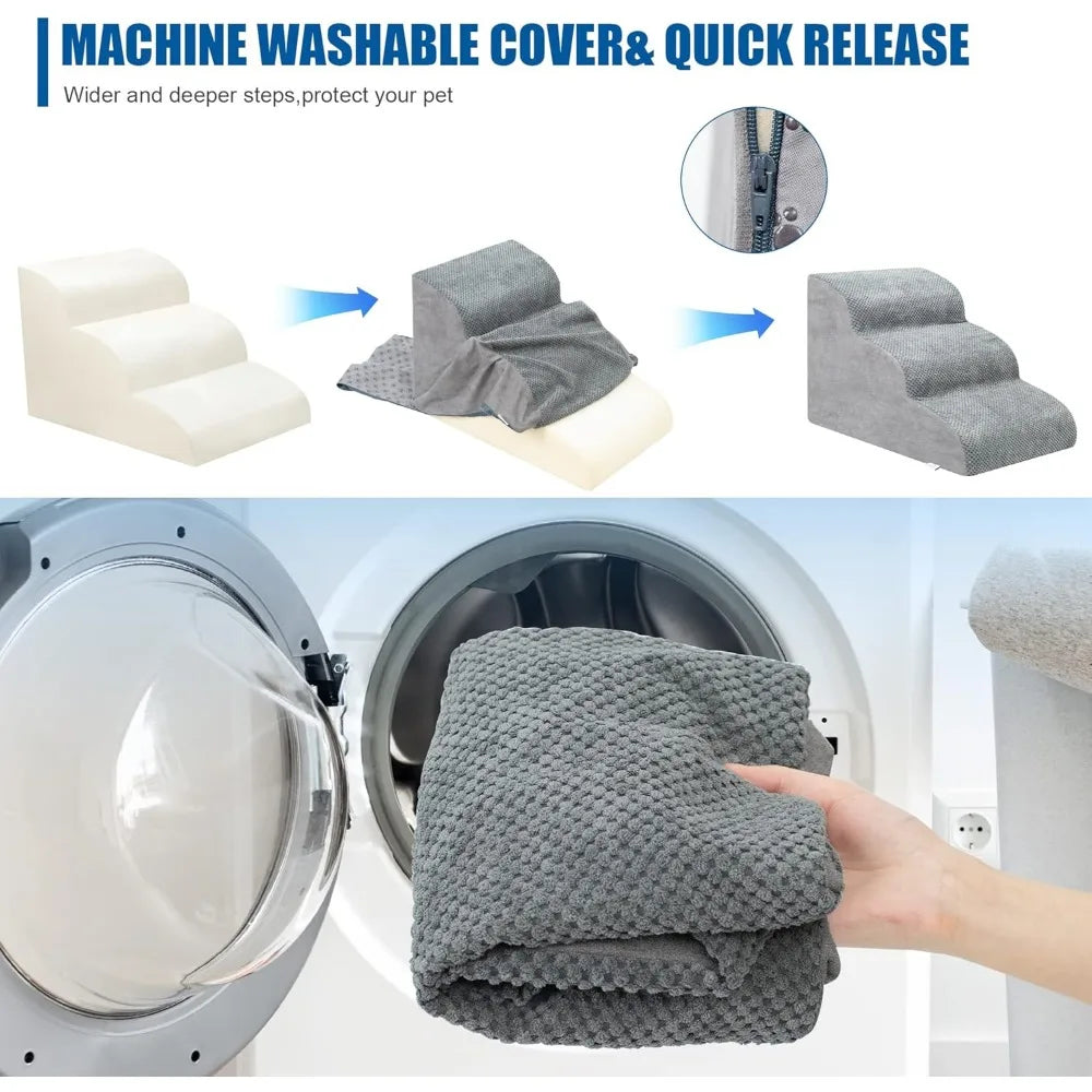 Climb with confidence on every step with the NONEDog Door Pet Stairs 3 Step Ramp, protecting joints and supporting mobility for small dogs.